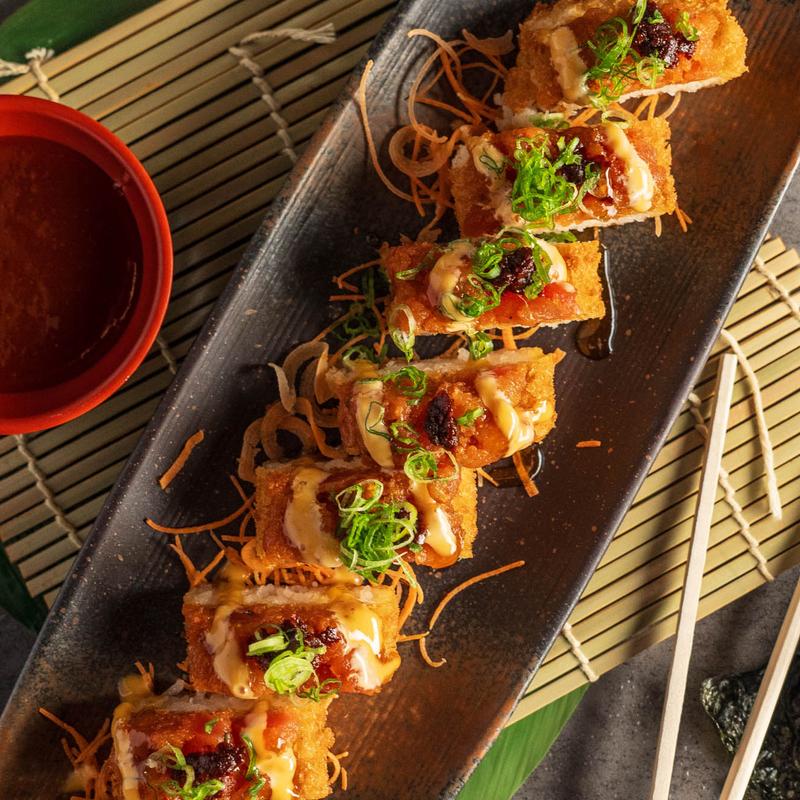 GalleryStir fried noodles, with beef, sweet onion, scallions, and bean...Onions on a grillCripsy fried crab sushi rollsAssorted sashimiSushi rolls topped with spicy sauceSpring rollsMasaman CurrySushi HotdogSushi Hotdog, top viewAssorted food dishesSeafood appetizer platterChef flipping foodChef grilling foodShrimp Pad ThaiSteak teriyaki bento boxBeef teriyaki bento box,w ith shrimp tempura, sushi rolls, and rice